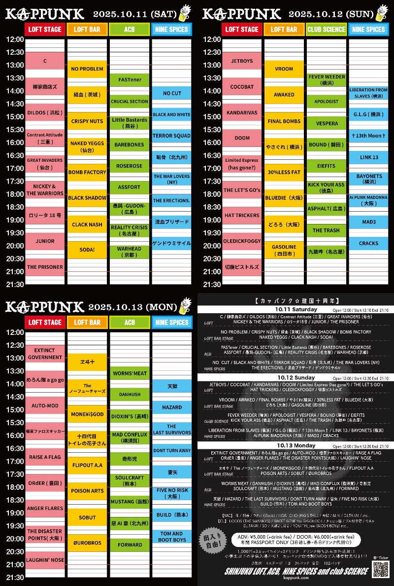 ◎ロリータ18号は10/11(土)新宿LOFTに出演いたします ◎手売りチケット販売中 ◎🎫メール予約destroin_of_lolita@yahoo.co.jp 新宿 LOFT & ACB & Nine Spices (12日は ACBとShinjuku club SCIENCE 差し替え☆) 10月11.12.13.日 ーー ADV 年間PASSPORT ONLY (三日通し券) ¥5,000 (+drink fee) (毎日最初の入場時にドリンク代かかります☆) DOOR 年間PASSPORT ONLY (三日通し券) ¥6,000(+drink fee) (毎日…
